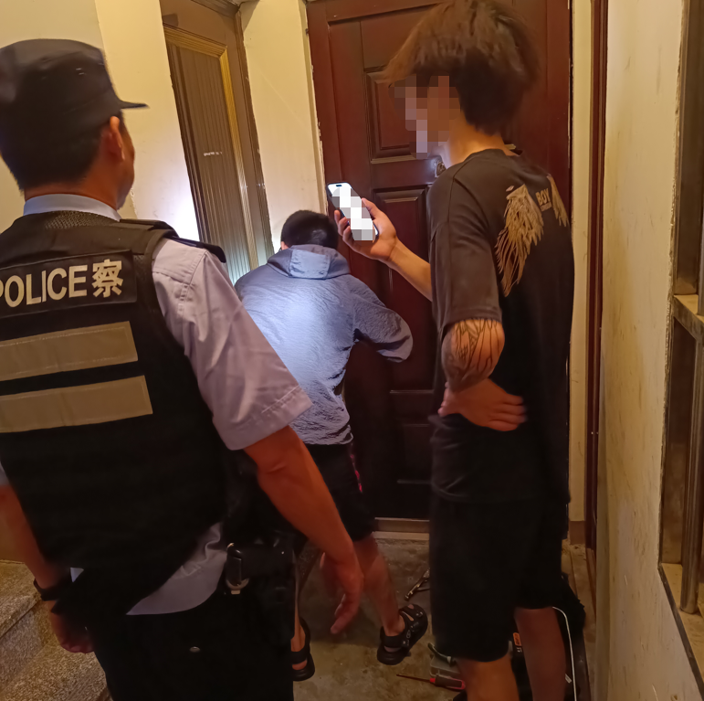 “小黄在家吗?”覃鹏一边大声呼喊一边敲门,并凑上前仔细听屋内声音,隐隐约约听到屋内有轻微动静。