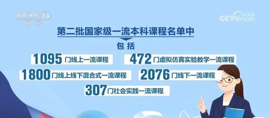 日前,教育部公布第二批国家级一流本科课程名单, 共有5750门课程获认定,其中包括1095门线上一流课程,472门虚拟仿真实验教学一流课程,1800门线上线下混合式一流课程,2076门线下一流课程,307门社会实践一流课程。这是教育部实施一流本科课程“双万计划”以来推出的第二批国家级一流本科课程, 目前国家级一流课程数量已经过万。
