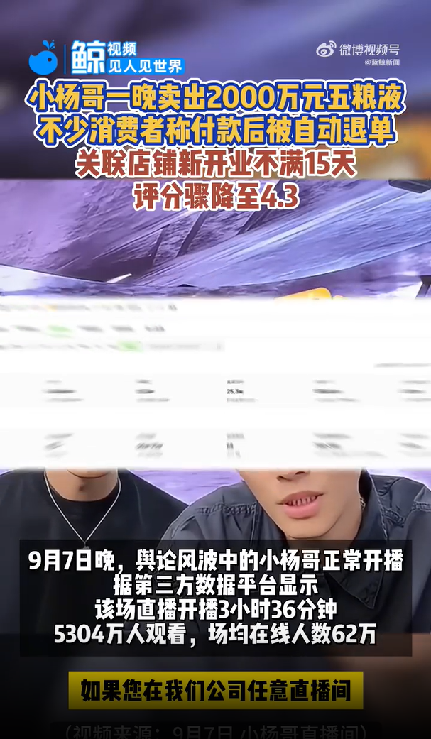 #疯狂小杨哥 #三只羊 #三只羊网络小杨哥卖出的五粮液被自动退单,订单违反平台规则,引网友热议!