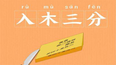 [ rù mù sān fēn ] 传说王羲之笔法有力,在板上写字,木工刻字时发现字迹透入木板有三分深。见唐张怀瓘《书断·王羲之》。后用来形容书法笔力强劲。也用来比喻分析问题深刻。 出 处 唐·张怀瓘《书断》:“晋帝时祭北郊;更祝版;工人削之;笔入木三分。”