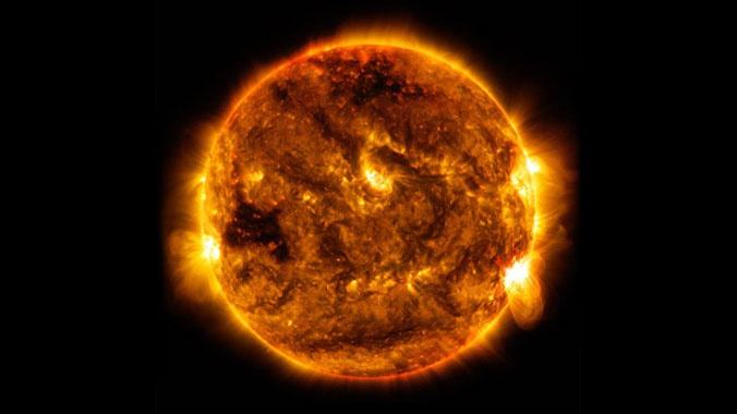 [ tài yáng ] 1.银河系的恒星之一,是一炽热的气体球,体积是地球的130万倍,质量是地球的33.34万倍,表面温度约6000℃,内部温度约1500万℃,内部经常不断地进行原子核反应而产生大量的热能。太阳是太阳系的中心天体,距地球约1.496亿千米。地球和其他行星都围绕着它旋转并且从它得到光和热
