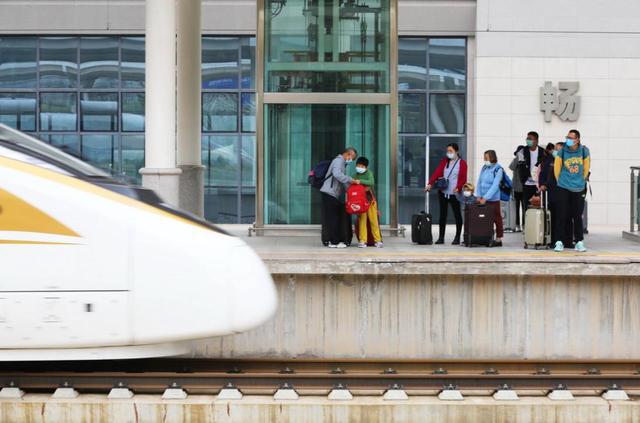 旅客在宝兰高铁定西北站站台上准备乘车出行。新华社发王克贤 摄