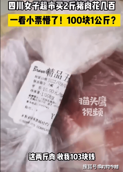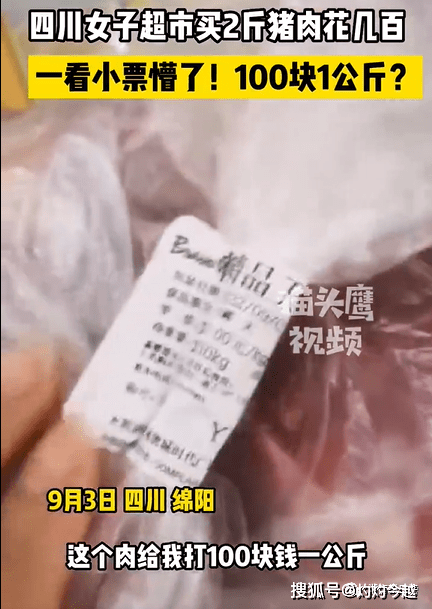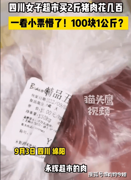 四川一永辉超市2斤猪肉103元,据报道:9月3日,四川绵阳。一女子在永辉超市购买2斤猪肉,花了103块钱,一看小票标价100块1公斤!女子顿时感觉肉价贵得离谱,随后找到超市理论,超市方面最终同意了退款。