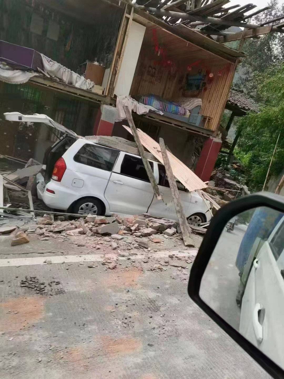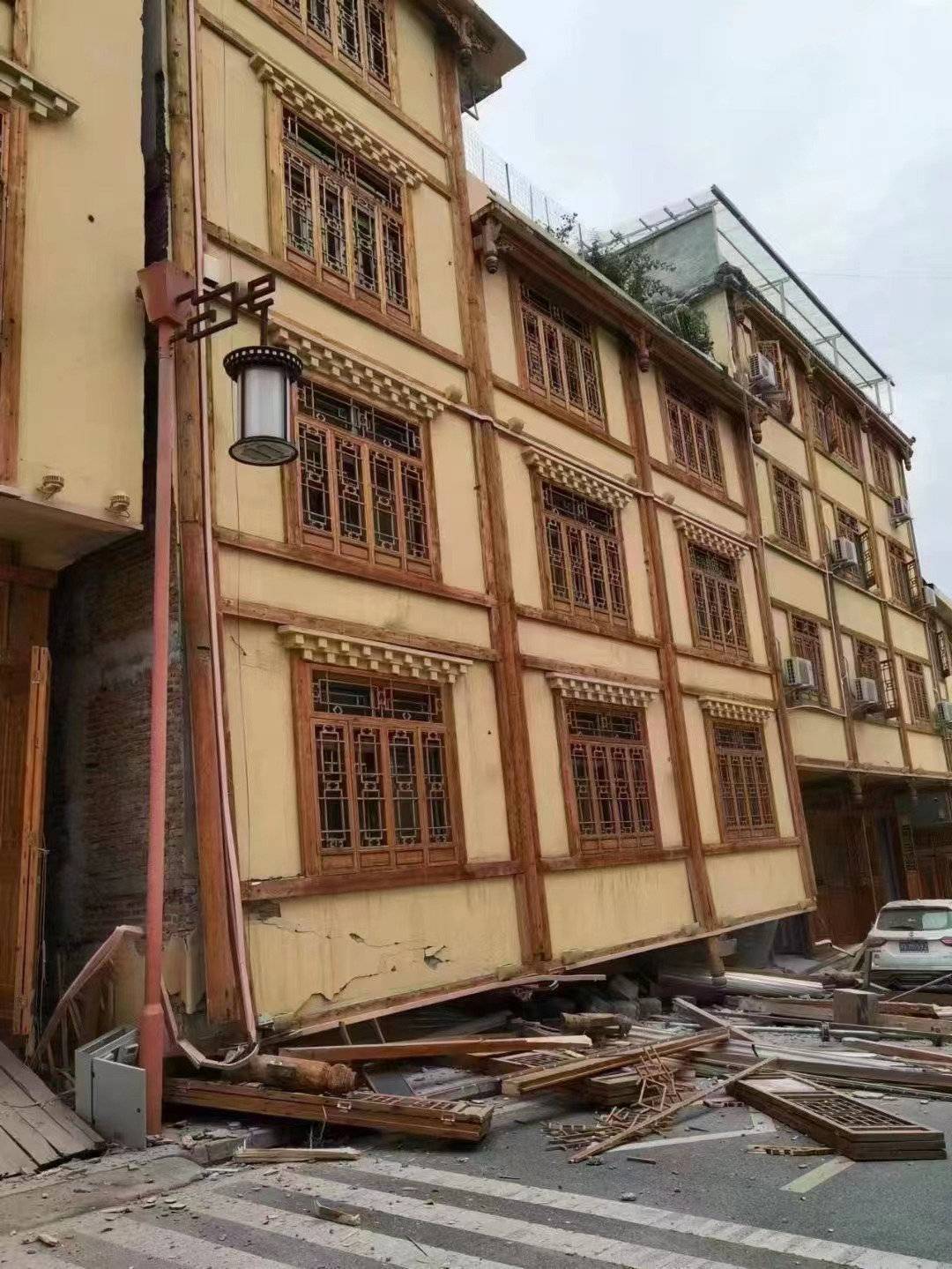9月5日下午,四川甘孜州泸定县发生6.8级地震,该酒店处于震中,震感强烈,店铺从二楼直接垮塌,整栋楼都倾斜了。徐先生告诉记者,地震发生后,店内有四人被埋,三人被救出,另外一名被救出来的人员经抢救无效死亡,目前还没有统计相关经济损失。