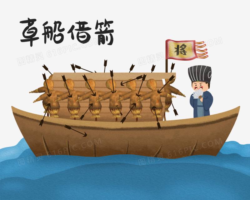 草船借箭是我国古典名著《三国演义》中赤壁之战的一个故事。借箭由周瑜故意提出(限十天造十万支箭),机智的诸葛亮一眼识破是一条害人之计,却淡定表示“只需要三天”。后来,有鲁肃帮忙,诸葛亮再利用曹操多疑的性格,调了几条草船诱敌,终于“借”到了十万余支箭。