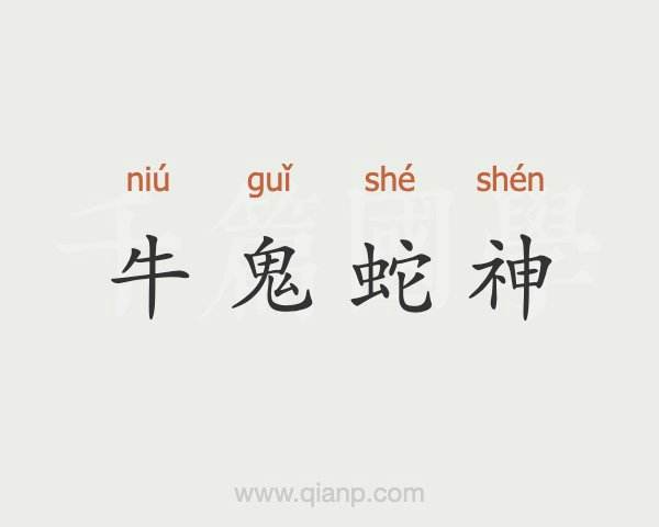 【解释】:牛头的鬼,蛇身的神。原形容虚幻怪诞。后比喻社会上形形色色的坏人。