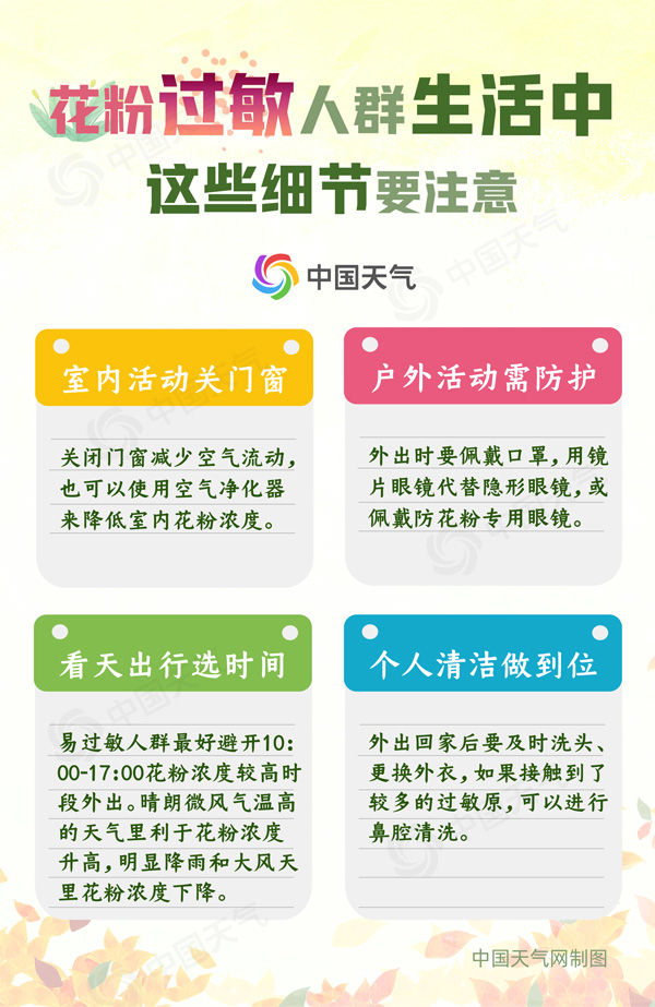 中国天气网温馨提醒,除了秋天的第一杯奶茶,秋天的第一个喷嚏也值得关注,及早预防,做好防护。当过敏症状严重时,一定要及时就医,在医生的指导下进行药物治疗。愿过敏星人也能享受美好的金秋。