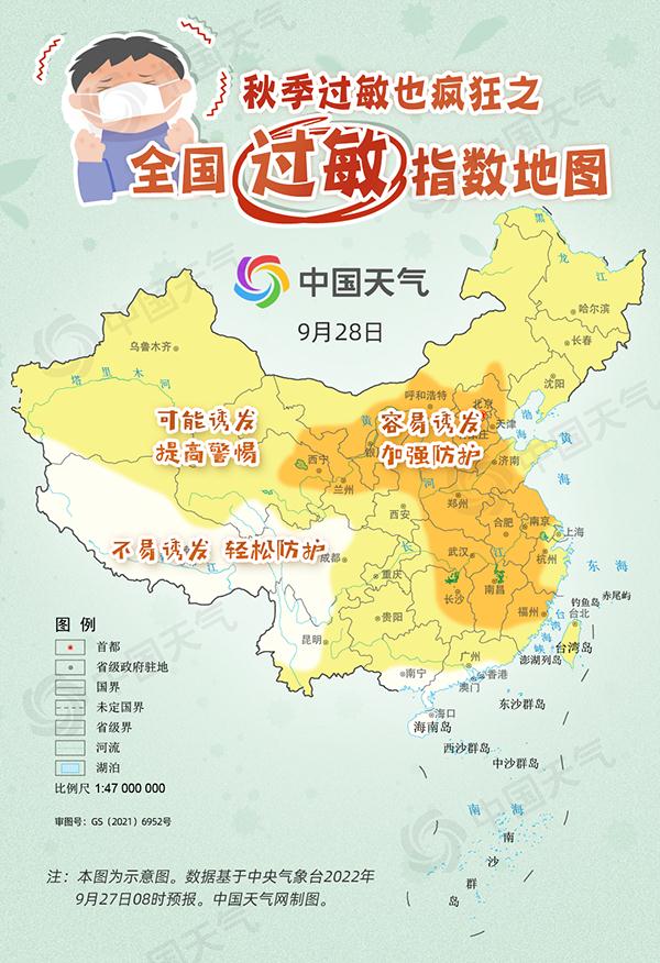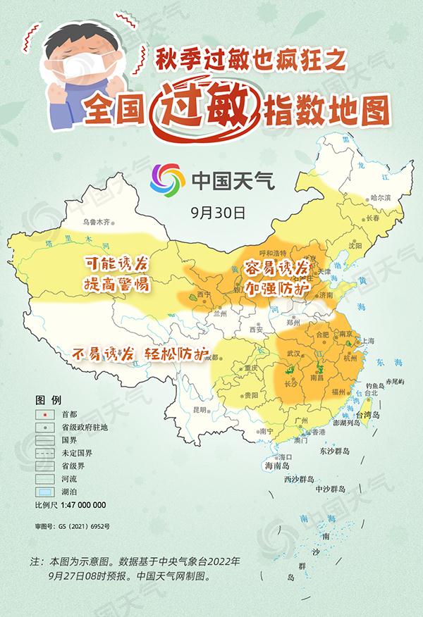 秋高气爽、凉风习习、天高云淡……大家眼中美好的初秋时节,对过敏人群来说却是难熬的。很多人认为花粉过敏只在春天发作,其实秋季也是过敏的高发季,一到此时,过敏星人们喷嚏不断、鼻涕不止。中国天气网特别推出全国过敏指数地图,看看最近哪里容易鼻涕与喷嚏齐飞,需要加强防护。