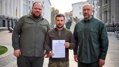 当天早些时候,乌克兰总统泽连斯基、乌议长斯特凡丘克和乌总理什米加尔签署了乌克兰加入北约的申请(如上图)。泽连斯基称乌克兰“正在采取一个决定性的步骤”,并表示“事实上,乌克兰已经通过自己的方式加入了北约——乌克兰已经证明了其与北约标准的兼容性”。