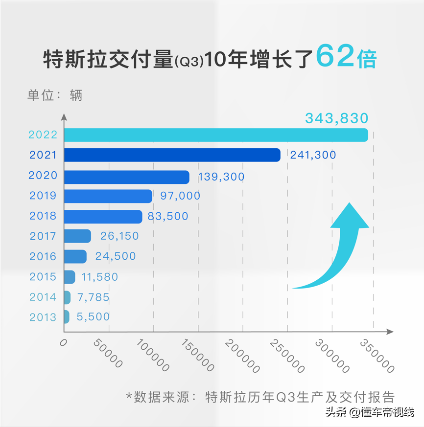 值得一提的是,根据特斯拉历年第三季度生产及交付报告数据,自2013年至2024年,十年以来,第三季度交付量增长了超62倍。