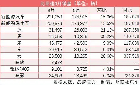 10月3日,比亚迪股份披露9月产销快报,公告显示,9月比亚迪新能源汽车产销量分别为20.49万辆和20.13万辆,同比增长118.12%和183.07%。其中,9月当月比亚迪海外销售新能源乘用车7736辆。