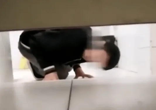 当时,一学生模样的年轻男子蹲在一个隔间里,极力地拱低头试图窥望隔壁的情形。这一幕被当时在厕所的其他女生发现,并大声叱喝:“滚出来,这是女厕所。”
