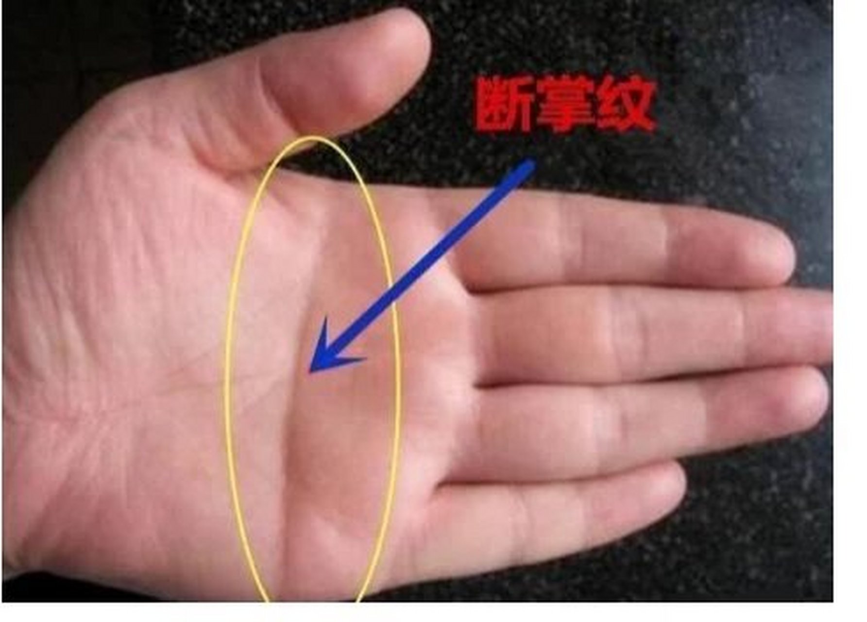 断掌纹的男人。在手相术学中,断掌纹是极少遇见之手相。