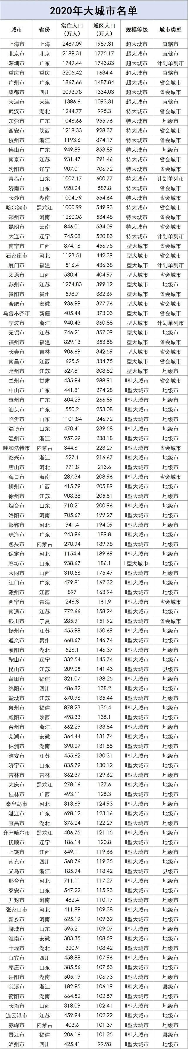 城区人口是衡量大城市的关键指标。根据2014年国务院印发《关于调整城市规模划分标准的通知》(下称《通知》):