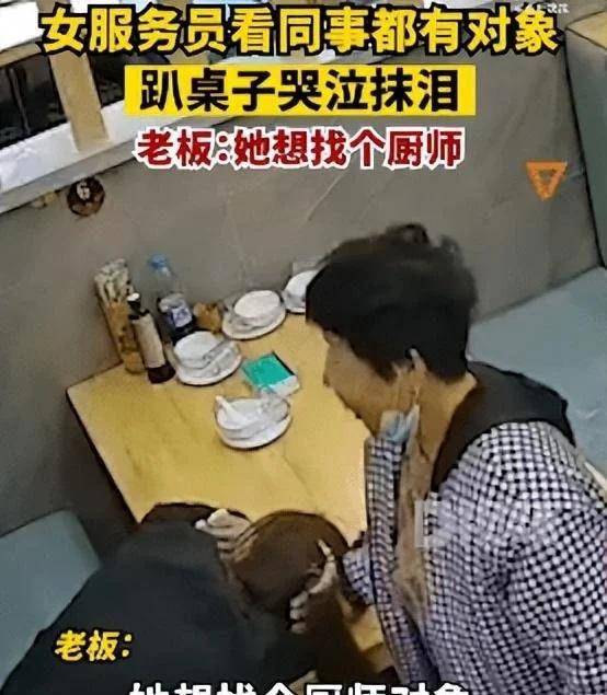 10月14日,哈尔滨一饭店内的一位女服务员趴在桌子上号啕大哭,询问原因得知饭店里的另外七八个女服务员都有了对象,而她自己还是单身。想到还没有男朋友,忍不住心中的委屈,只能用眼泪释放心里的情感。