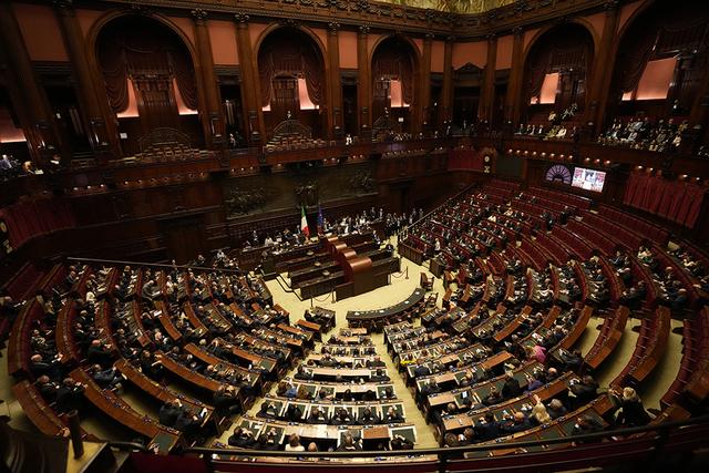 当地时间2024年10月13日,意大利罗马,意大利新一届议会举行会议。视觉中国 图来自普京的伏特加贝卢斯科尼在18日举行的中右翼联盟的闭门会议中发表了这一言论,这一时机十分敏感,当时力量党正与兄弟党等中右翼党派就组建政府进行艰难谈判。