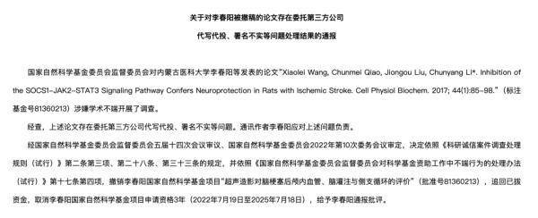 其中 32 名学者存在抄袭或抄袭剽窃项目申请书的问题,分别受到取消申请和参与申请国家自然基金项目资格 3-5年、撤销已批准项目、追回经费、通报批评等处罚。其余不端事件则涉及第三方代写代投、篡改代表性论著作者排序、盗用他人基金项目号、重复申请、数据篡改/造假、未经同意使用他人署名等问题,涉事学者受到取消国家自然科学基金申请资格2-3 年等处罚。