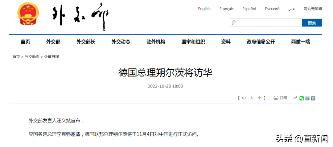 应国务院总理李克强邀请,德国联邦总理朔尔茨将于11月4日对中国进行正式访问。