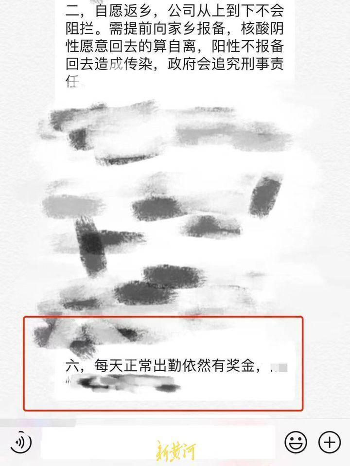 同时,通知表示,再有四五天可以恢复正常秩序,每天正常出勤依然有奖金。