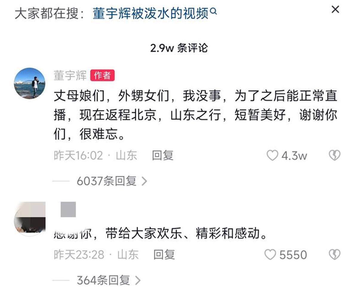 董宇辉回应遭陌生女子泼水