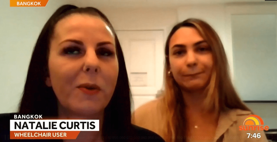 Natalie Curtis,从高中起,身患残疾的她就一直坐轮椅。前几天,她坐飞机从新加坡飞往曼谷。在上飞机的时候,工作人员为她提供了适合在过道穿梭的轮椅,把她带到了飞机的座位上。