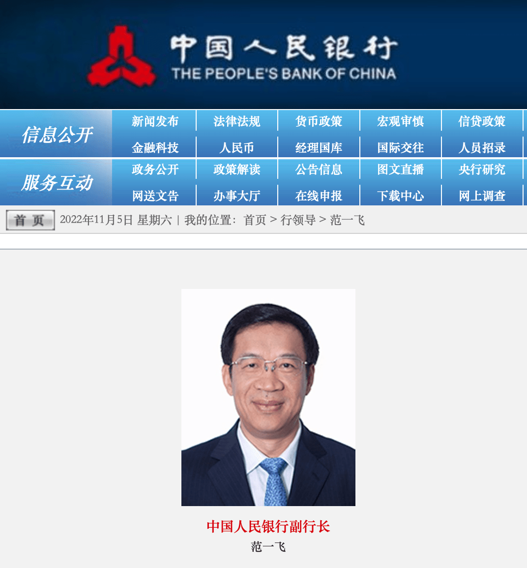 中央纪委国家监委网站11月5日发布消息,中国人民银行党委委员、副行长范一飞涉嫌严重违纪违法,目前正接受中央纪委国家监委纪律审查和监察调查。
