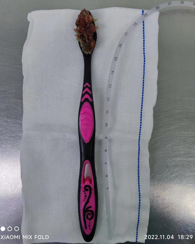 此次,团队将牙刷顺利取出实属不易。若消化道异物内镜不能取出,则需要外科手术治疗,这势必会带来脏器损伤。
