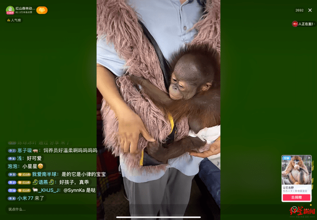 从2018年开始,红山森林动物园就开始在各个平台试水网络直播。2020年时,动物园已经积累了一些直播经验。在以才艺表演为主的大环境中,该园以保护动物的视角和内容脱颖而出,一位工作人员告诉记者,“播出的时候全网热度很高,每天都有几万十几万的人在直播间观看。”
