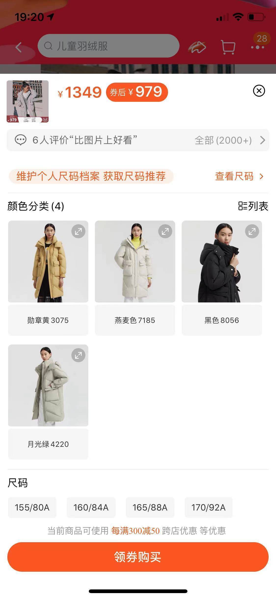 图/波司登天猫官方旗舰店截图