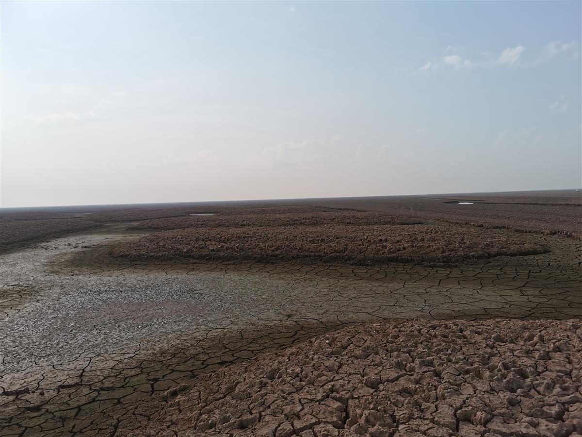 “到了岸边还要往湖内开车走一两个小时的路程。”到了该地,胡先生航拍后自己也很震惊,于是制作了视频发布到了社交平台。据胡先生了解,这块目测长宽都有数百米长方形区域所在地之前是湖心的位置,一直淹在水底,今年的水位太低,才露出真容。