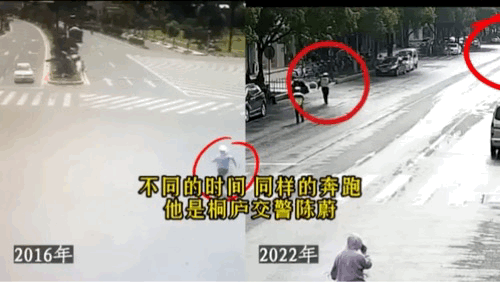 他去世前几天,2024年11月2日上午9点多,陈蔚在分水镇东门大道执勤,在他前方100米左右,一名女子驾驶电动自行车,突然摔倒在地,前面一名骑车男子逃逸。陈蔚狂奔了400多米,终于在某公寓门口,截停了骑车男子。