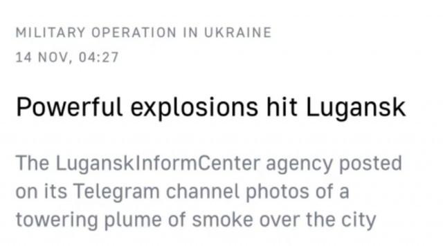 塔斯社记者称,其中的一起爆炸发生在卢甘斯克市南部。此外,从市中心还传来几次爆炸声。当地居民说:“在第一次爆炸发生后,在一分钟内又发生了约5次爆炸。最强烈的爆炸发生在22时前后。我房屋的窗户几乎都被震碎了”。