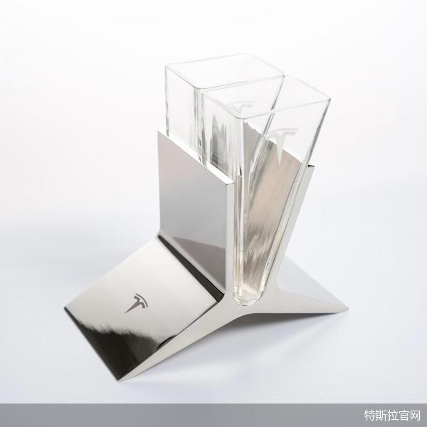 商品描述显示,这是一款可以尽情享受你最喜欢的酒的限量版特斯拉啜饮杯。灵感来自特斯拉龙舌兰酒独特的轮廓,每个杯子都设计有棱角轮廓和刻有特斯拉标志。在配套的金属架子上自豪地展示你的玻璃器皿。