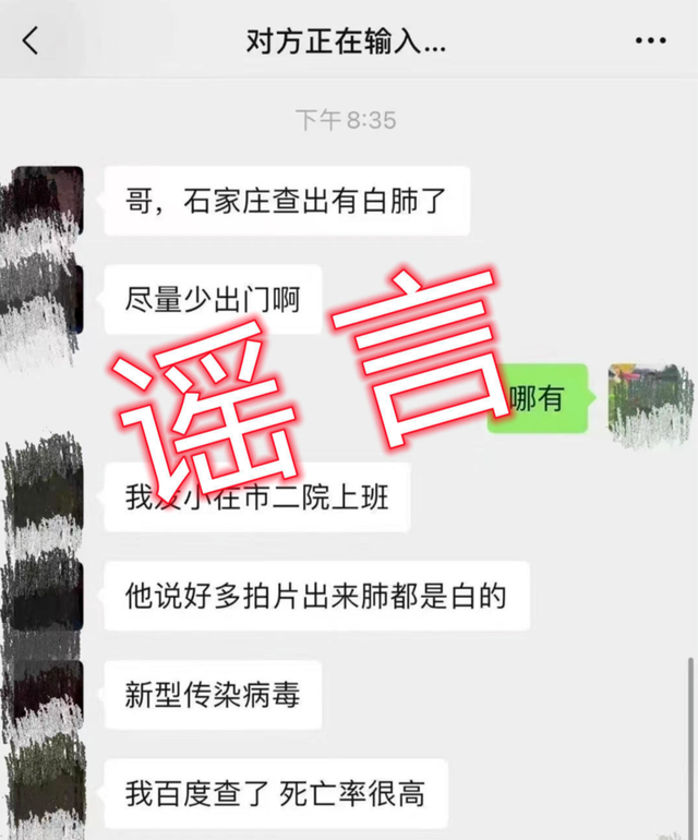 “石家庄查出有白肺了”“我发小在市二院上班,他说好多拍片出来肺都是白的”“初步猜测可能是新冠变异”……近日,几张关于“石家庄查出白肺或因新冠变异”的微信聊天记录截图,在社交媒体流传。