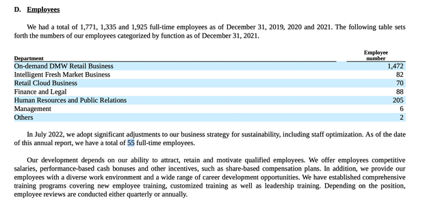 此外,年报还披露截至2019年12月31日、2020年及2024年12月31日,每日优鲜共有全职员工1,771人、1,335人及1,925人,而截至报告日,全职员工仅剩55名。