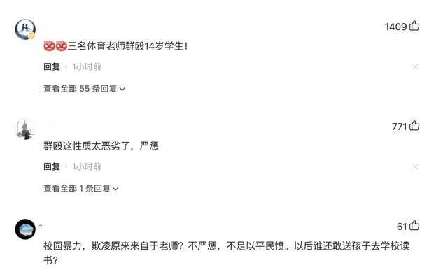 就拿这位14岁学生来说,没在学校被其他学生欺负和霸凌,反而被三名老师好好教育了一番,简直是让人无法想象,估计说出去没有多少家长敢相信,因为教师在很多人眼里,应该是品德高尚,有素质的人,不会对孩子胡乱动手的。