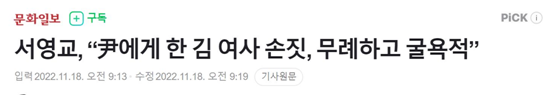 《文化日报》报道截图:徐瑛教称,“金建希向尹锡悦做出的手势,无礼又屈辱”