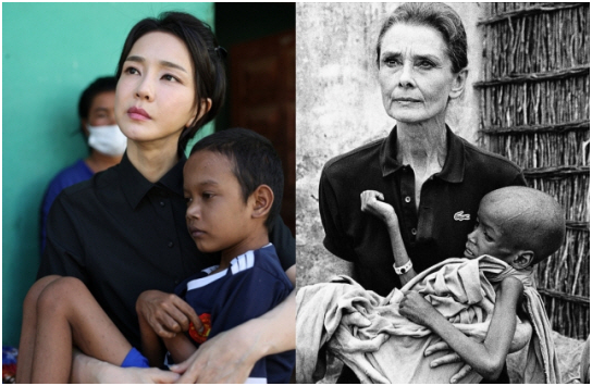 报道称,金建希12日在柬埔寨金边探望一名患有先天性心脏病的儿童,并与其进行合影。有韩国网民称,金建希怀抱患儿的照片与著名影星奥黛丽·赫本1992年在索马里拍摄的一张照片极为相似,认为金建希“模仿”和“抄袭”赫本。13日,多家韩媒还刊登了金建希手挽美国总统拜登胳膊的照片,引发争议。有人认为,“第一夫人这样做不合适”,也有韩国网民认为,“这显示了韩美关系密切,没什么不妥”。
