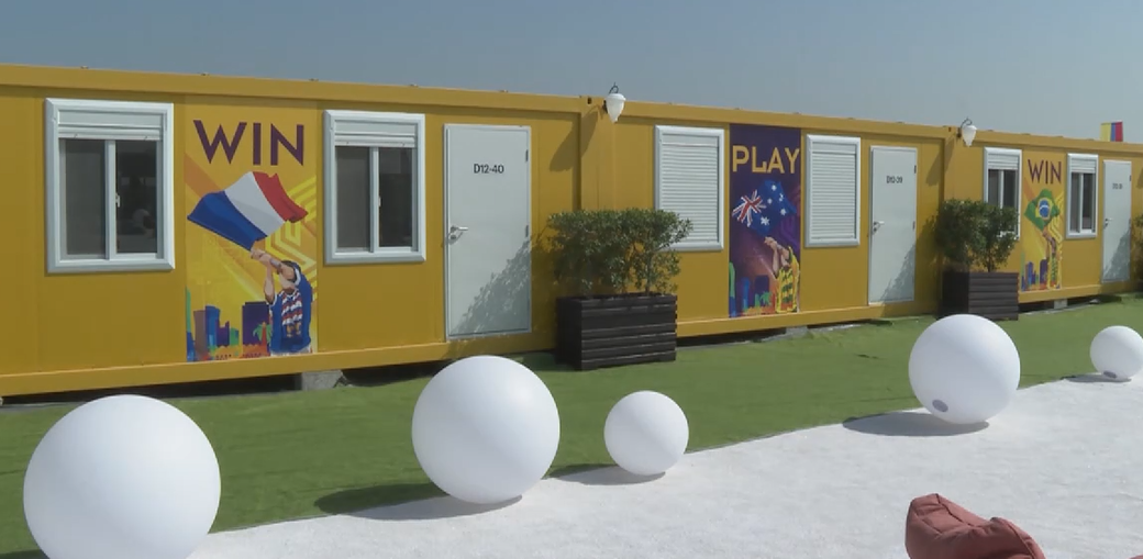 集装箱助力世界杯,不仅仅是在球场中。中国还参与建设了世界杯期间多哈最大球迷村“自由区球迷村”。该球迷村由6000个简易集装箱式房屋组成,每间房屋可容纳两人,最多可以同时接待12000名球迷。