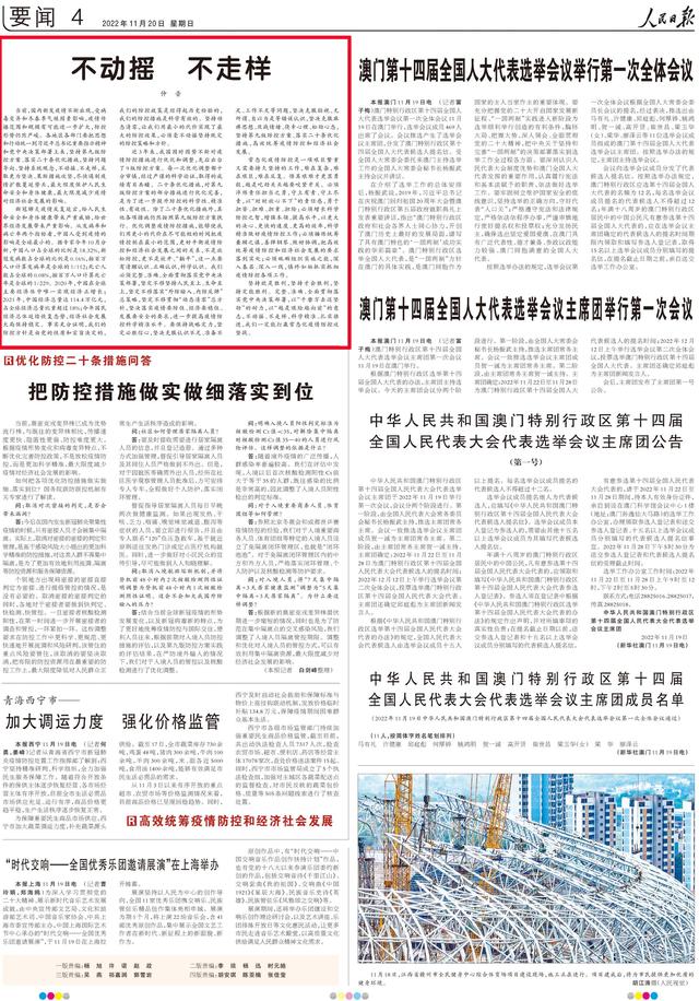 11月20日,《人民日报》再度刊发署名为“仲音”的文章《不动摇 不走样》,为打赢常态化疫情防控攻坚战发声。这是近期“仲音”第八篇关于疫情防控的文章。