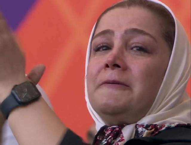 而在今晚世界杯的现场看台上,一位伊朗妇女在看台上看到这一幕之后热泪盈眶,并且为伊朗队球员们的勇敢发声鼓掌喝彩。