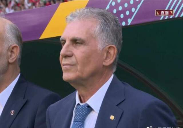 伊朗队的葡萄牙籍主教练奎罗斯也是一脸严肃的样子。