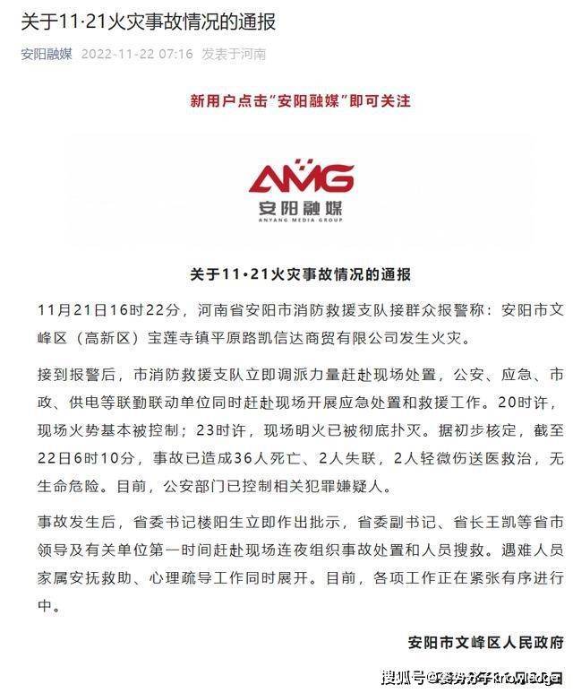 悲剧!11月21日,河南安阳发生一场令人痛心的火灾,36人在火灾中不幸罹难!