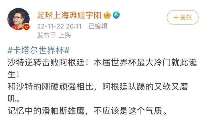 你所关注的用户已经被注水:虽然喜欢梅西,但是作为亚洲国家,我还是希望沙特把阿根廷送回家