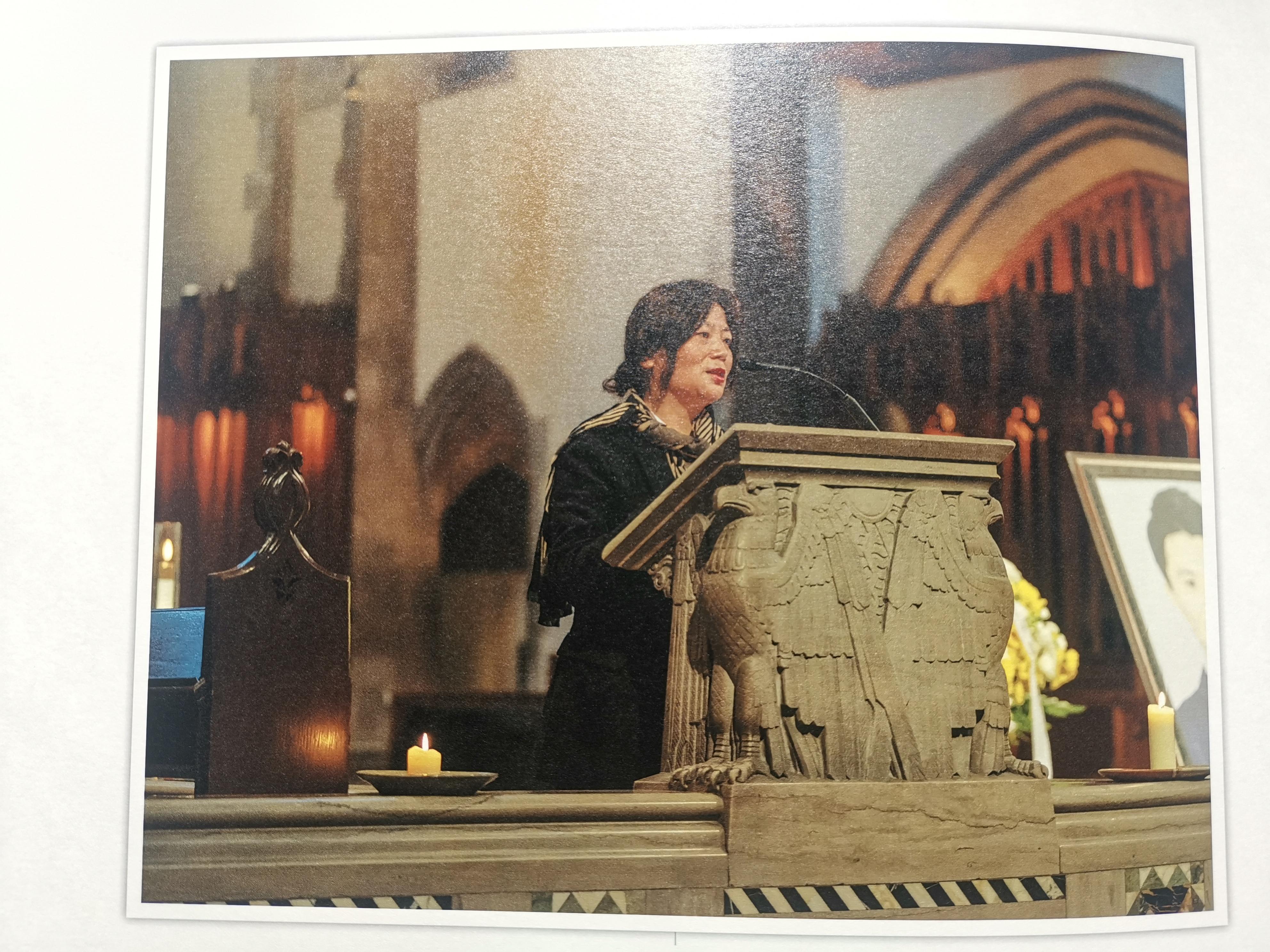 发言完后,教堂里响起了唱诗班和管风琴演奏的《梦见家和母亲》,哀婉凄美的歌声回荡着,我瞬间泪如雨下。教堂里的人一个个上来和我拥抱。第二天,同同的遗体运回学校,很多老师、学生来送别他。
