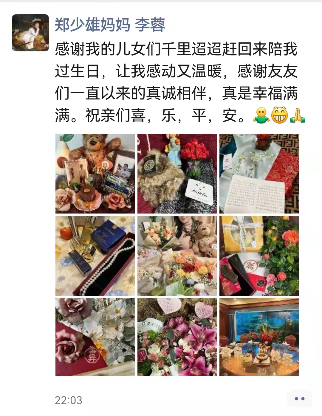 郑少雄一周年忌日的时候,李蓉发的朋友圈。
