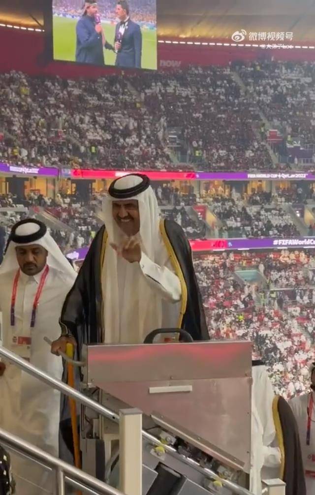 为他准备了一部“敞篷电梯”,可以从看台下的VVIP席直达楼上的VIP出口。哈马德最高皇帝也一路向臣民挥手致意。