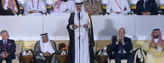 在最高皇帝和沙特王储等各国政要的注视下,卡塔尔国王发表讲话,对大家表示感谢,并祝愿32支参赛球队拿出最高水平,共同打造一届精彩的世界杯。