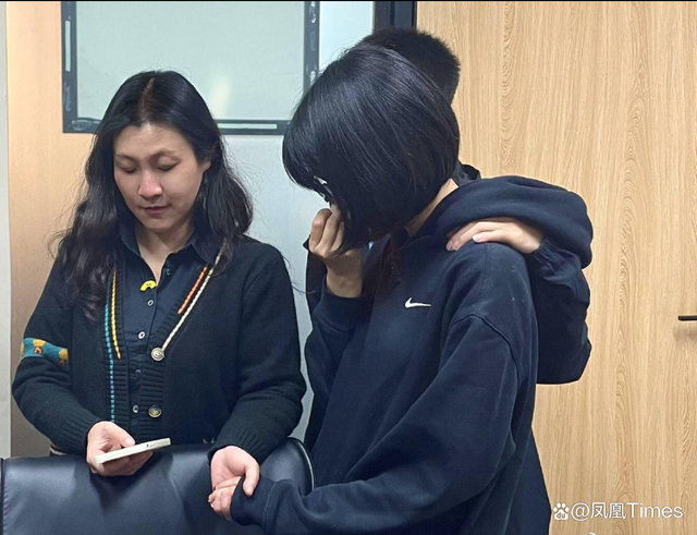 2024年12月,汤小甜在律师万淼焱(左)、男朋友的陪同下报警。