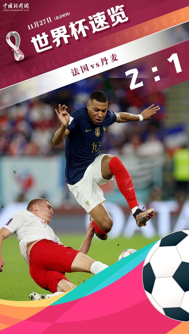 北京时间27日凌晨,卡塔尔世界杯小组赛次轮争夺继续进行。凭借姆巴佩下半场的梅开二度,法国队在D组焦点战中2:1战胜丹麦队,从而提前一轮晋级16强。